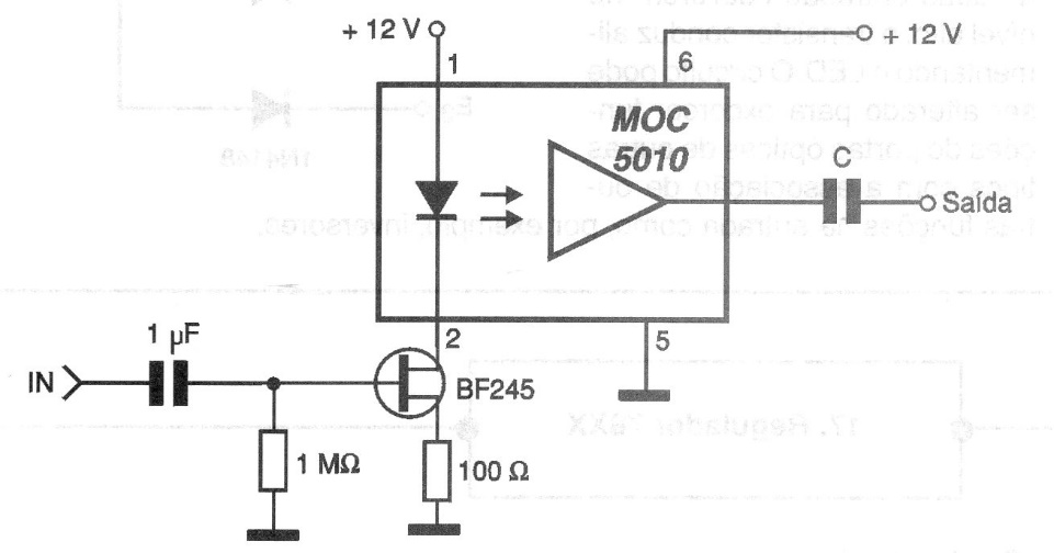 This circuit is suitable for isolating audio signals, as it has very low distortion. The used coupler is not very common in our market and for LED excitation a junction FET is used. Capacitor C can be 100 nF to 1 uF.