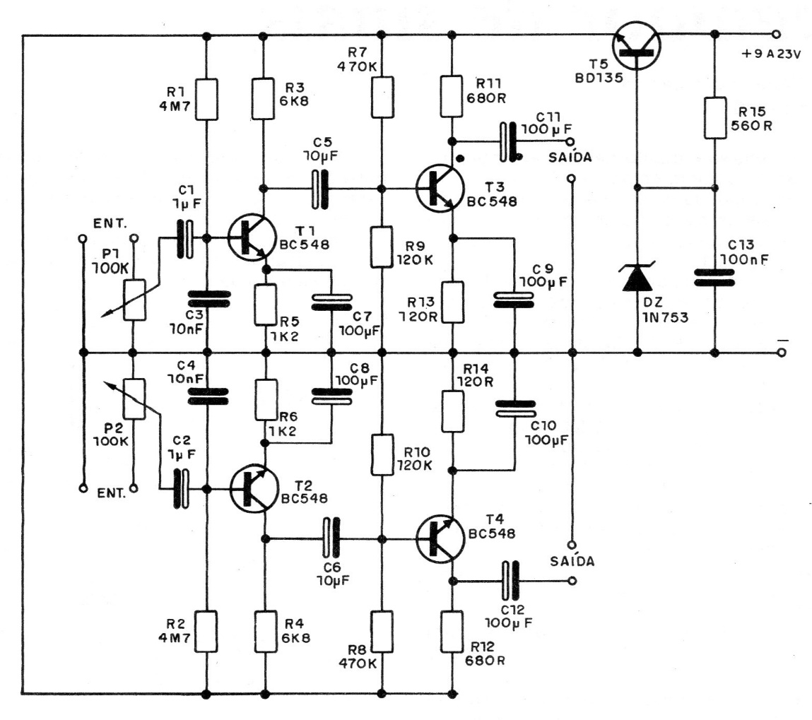 This is a commercial circuit that can be found in several publications from the 80s and 90s and even earlier. The circuit in question was taken from a 1986 documentation showing excellent characteristics. In this case we have a high-performance stereo version. The current required is only a few milliamps.