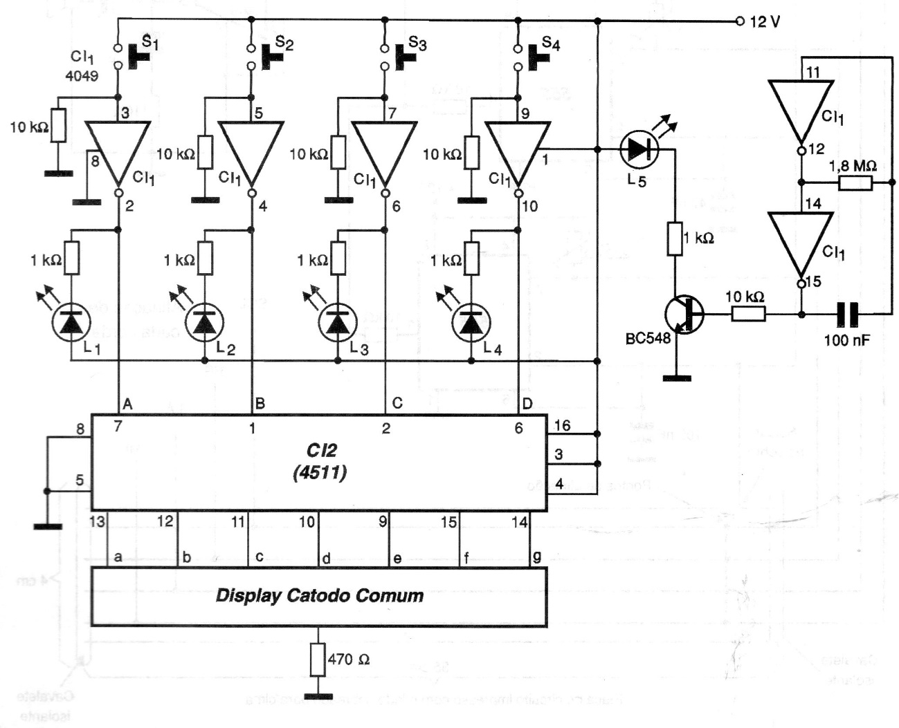 This didactic circuit was found in a 2001 documentation. It presents the result of programming in binary using keys in both binary and decimal form. The display is 7-segment, and the power can actually be supplied by voltages from 6 to 12 V.