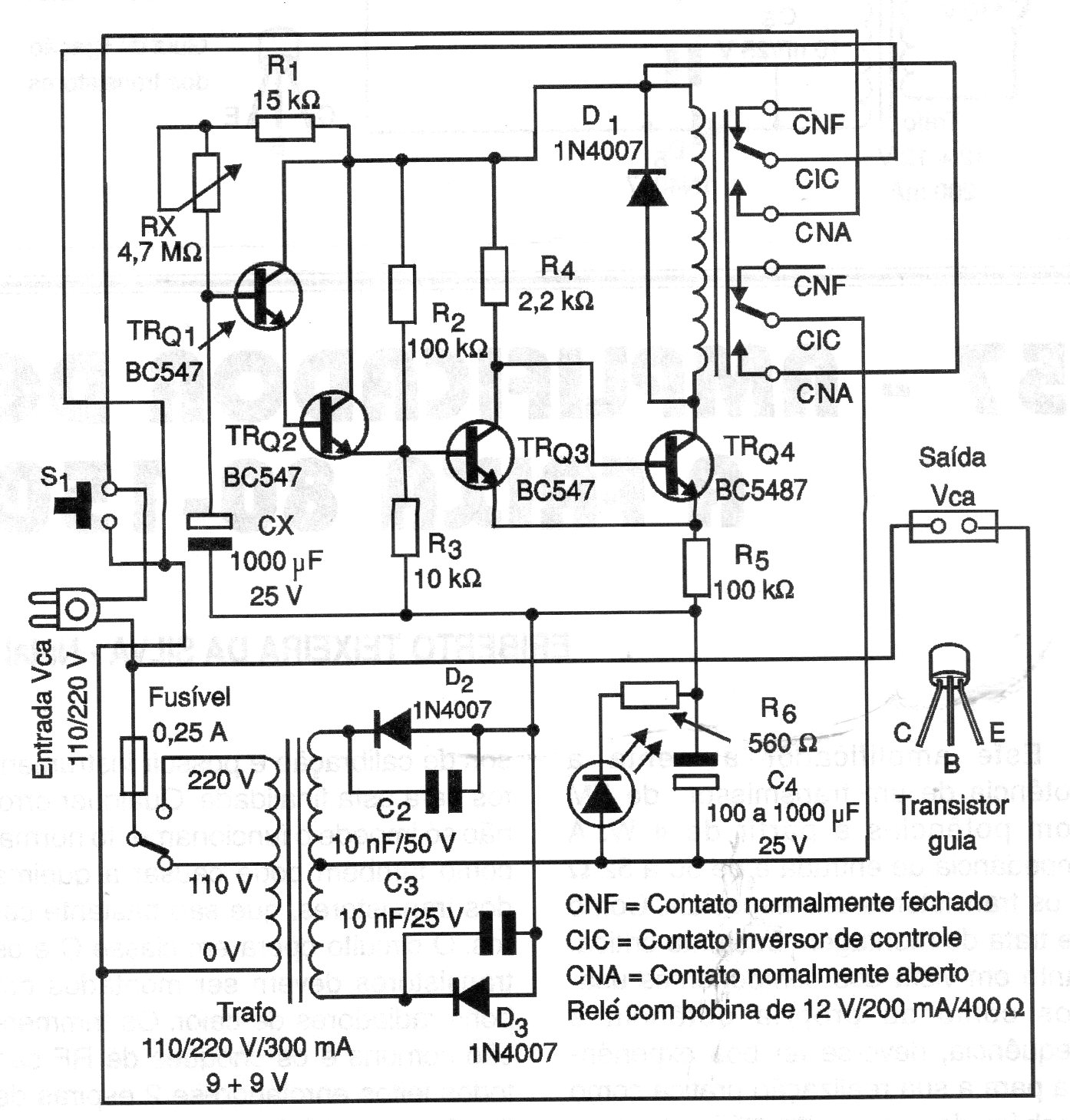 This timer up to 2 hours was found in a documentation of the year 2000. It uses only bipolar transistors and is therefore easy to assemble today. The relay used is 9 V and the supply is included. The circuit shuts down the source at the end of the timing.