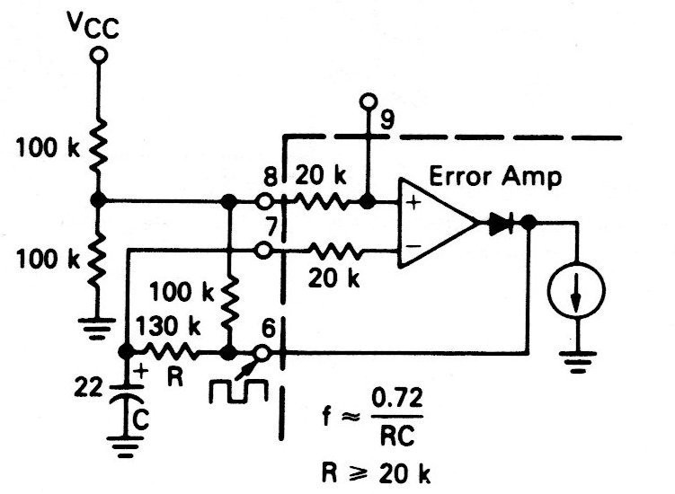 What this circuit does is to agitate a servo at a frequency of 0.25 Hz, which can be used in automations. The frequency is given by the capacitor and the error amplifier can be implemented by an operator.