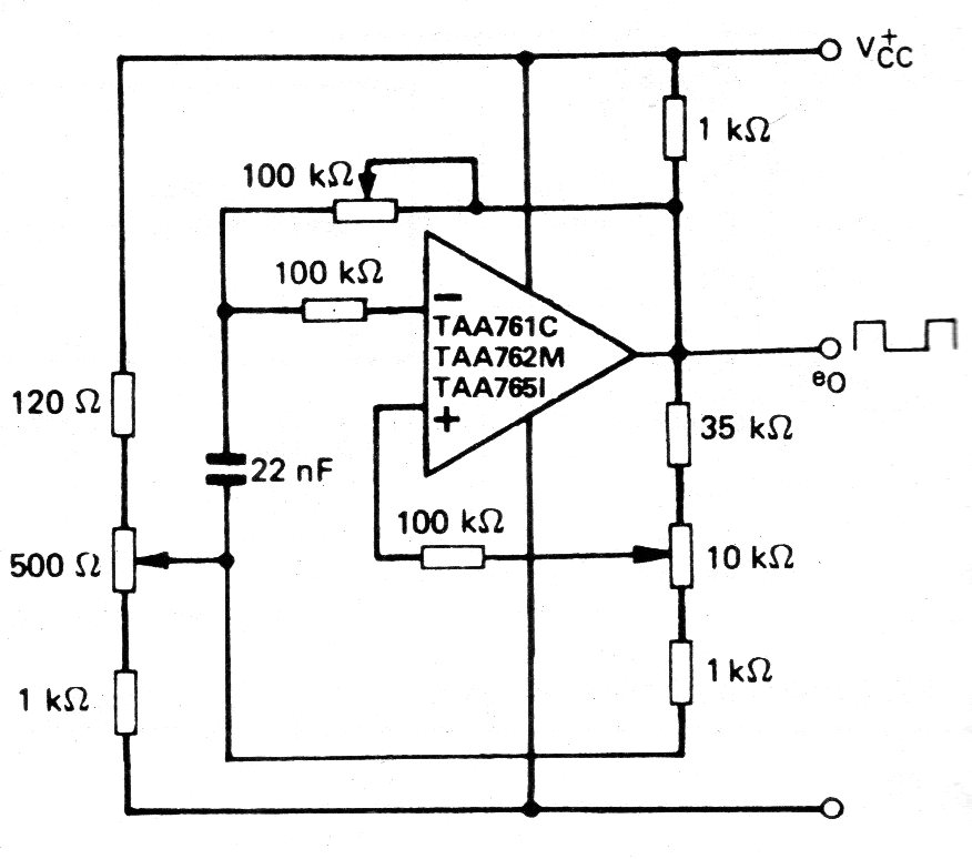 This circuit, from the 80s, uses an operating system of the time to generate pulses in frequency and duration that can be adjusted in the potentiometers. The power supply does not have to be symmetrical and the voltage is according to the operational.