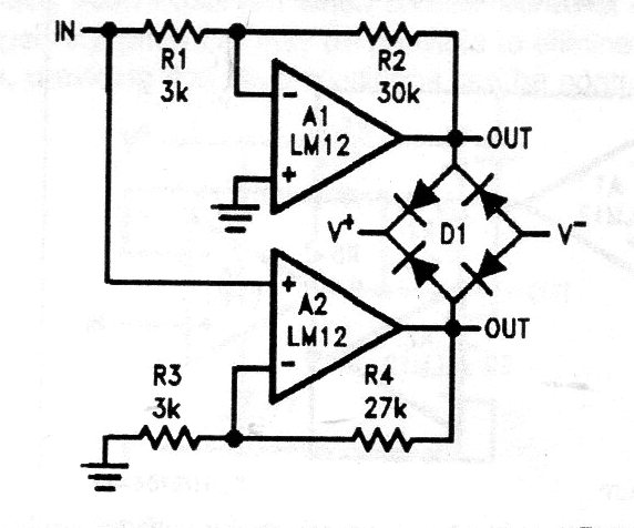 This is the normal configuration of the LM12 as a high voltage amplifier. The LM12 consists of a high voltage operational amplifier from National Semiconductor that is now a Texas group company.