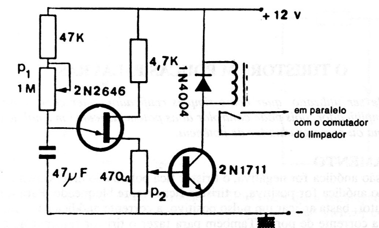 This circuit is from an old publication, from the 80s, since in modern cars this type of circuit is now part of the electronics of all cars. The circuit uses a unijunction transistor as a base and the time is adjusted in a potentiometer.