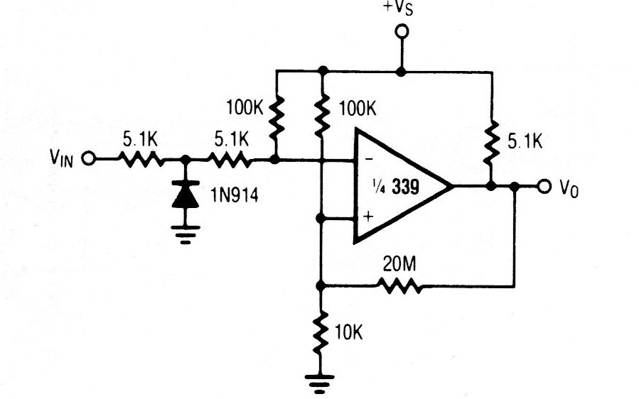 This circuit can be implemented with other comparators in the same series. The circuit is from a component manual and the supply voltage between 3 and 12 V depends on the application.