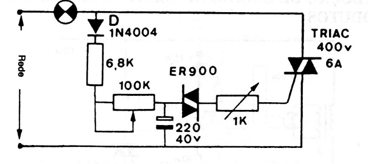 This circuit only works with incandescent lamps and the frequency is adjusted in the pot, depending also on the capacitor. The triac must be equipped with a heat sink. The circuit is from an 80s manual.