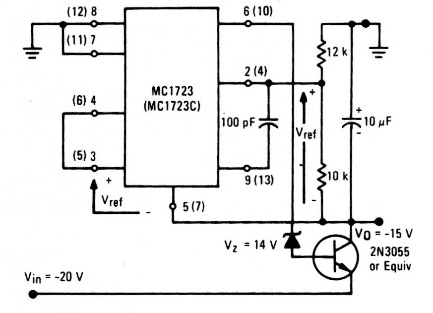 We found this circuit in a documentation from the 90s. The integrated circuit is the Motorola equivalent of the 723 and the transistor can also be the TIP31, which must be equipped with a heat sink.