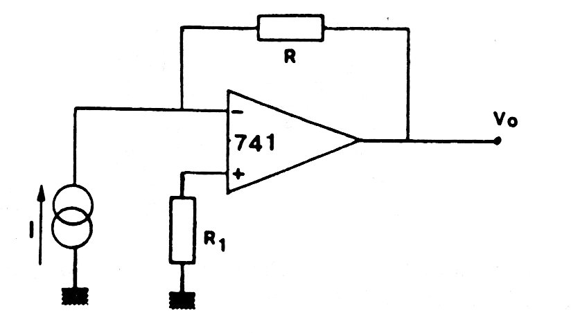 This circuit converts a constant input current intensity into a voltage given by Vo = -R x I. T1 must be equal to R. The operational admits equivalent.