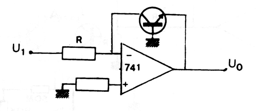 The logarithmic response of this amplifier with operational is given by the presence of the transistor in the feedback circuit. Any general-purpose transistor can be used, and the operational one can also be of a more modern type with symmetrical power according to the application.