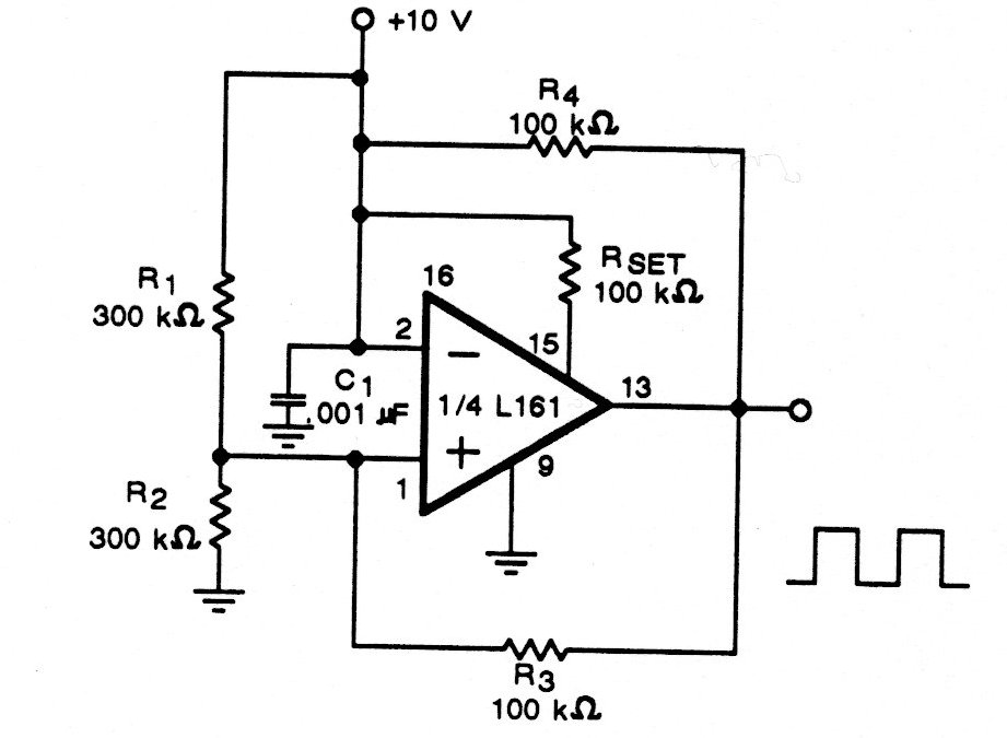 The integrated circuit used in this 90's circuit is not common today, but the configuration can be adapted to operate with modern components. The circuit does not require a symmetrical source and the frequency is given by C1.