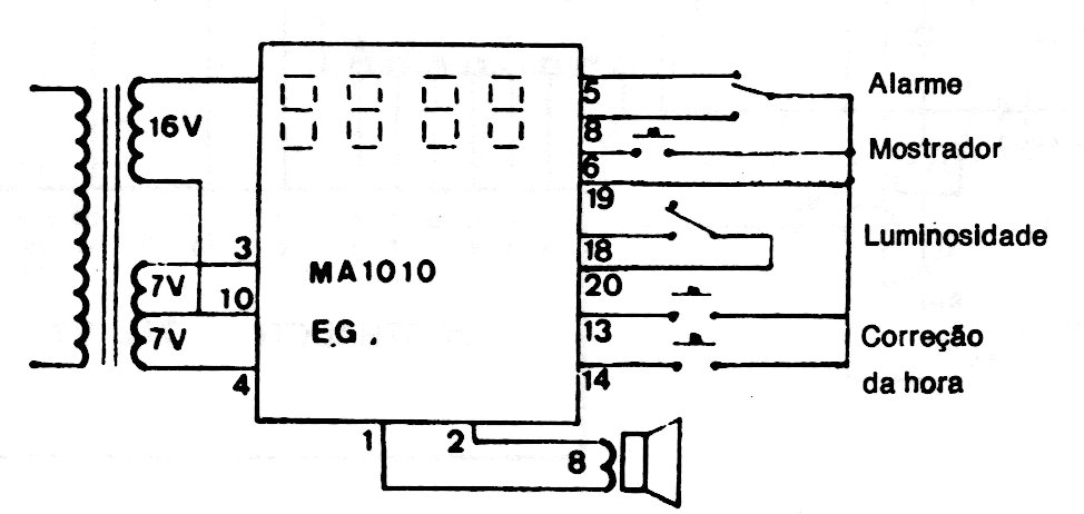 This was one of the National Semiconductor clock modules very popular in the 70s and 80s. In the figure we have the basic circuit. The major problem with this module was that it required a special two-voltage transformer.
