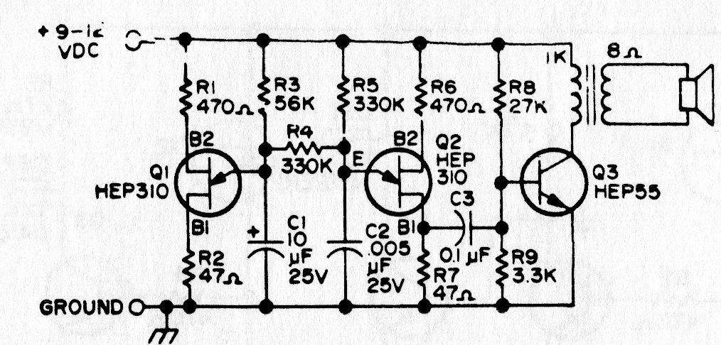 The transistors in this circuit, found in an American publication in 1975, can be replaced by modern equivalents. The transformer is of the type found in amplifiers and transistor radios with at least 1 W of output.