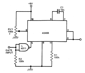 The CMOS 4046 integrated circuit is not very common today, consisting of a very efficient PLL for many low and medium frequency applications. The circuit presented is from documentation translated from the 1960s. The circuit consists of a VCO that is activated by an external signal coming, for example, from a microcontroller, in which case the supply must be made with 5 V. The circuit will then work as a shield.