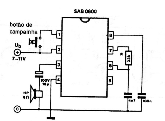 The integrated circuit used in this application is uncommon today and specific to the application, as it is a special sound synthesizer. We found the circuit in a component manual.