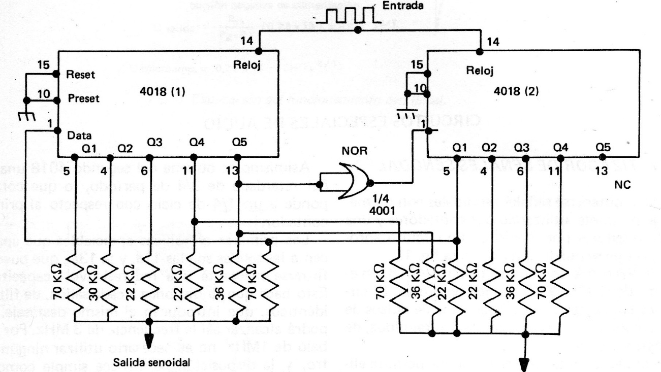 Although we found this circuit in an old documentation, it is still up to date due to the components it uses. In fact, we found variations of this circuit in other articles on this site. The circuit can operate with voltages from 5 to 12 V. The pin 8 and 16 of the 4018. Power supply was not indicated.