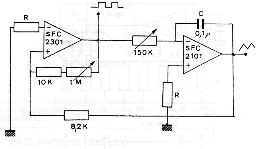The operational ones used in this circuit are not very common today, but the same circuit can be implemented with more modern operational ones. The resistor R determines the frequency together with C and the supply must be made with a symmetrical source.