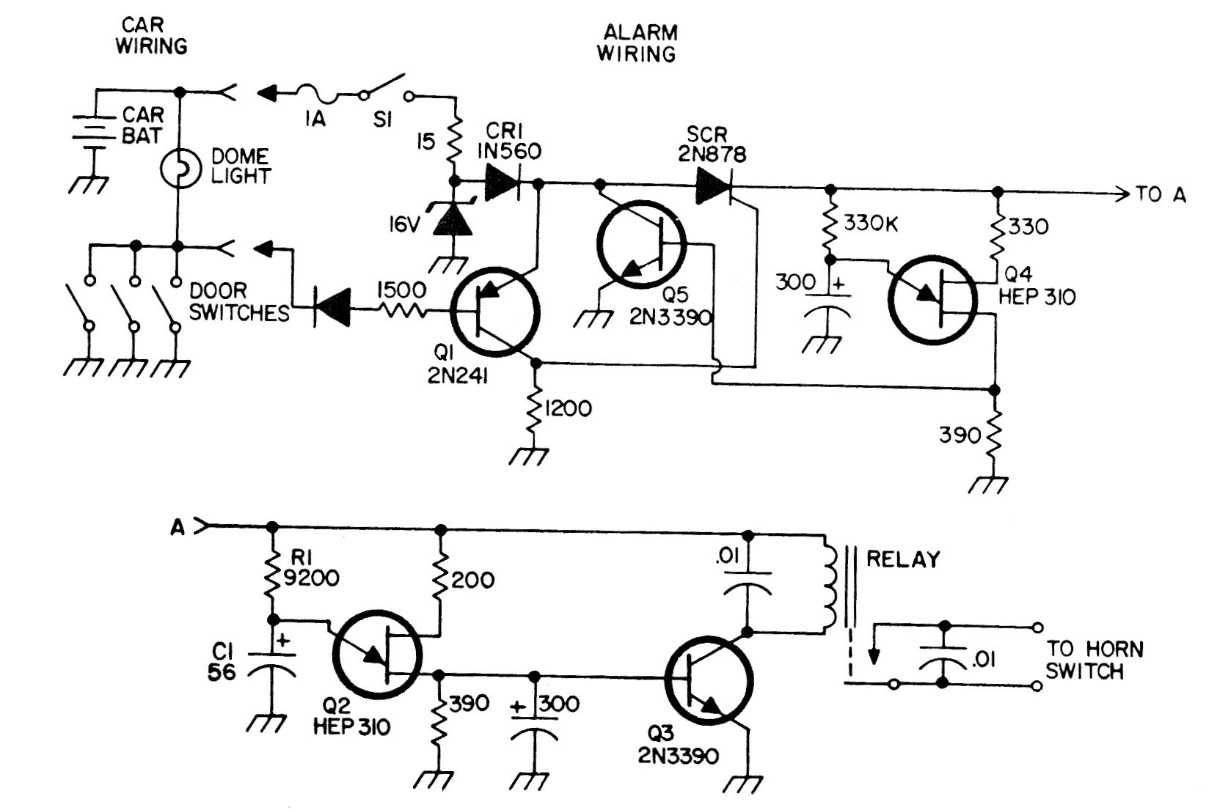 This circuit was found in an American publication from the 1970s. The circuit uses components from the era that can be replaced by modern equivalents. This circuit has a reset after 1.5 minutes. The relay is 12 V high current.