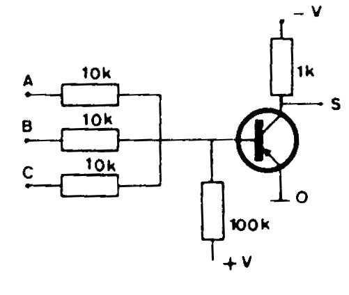 The figure shows how to implement a No – OR or NOR function with 1 general purpose transistor. The supply voltage depends on the logic. The circuit can act as a shield.