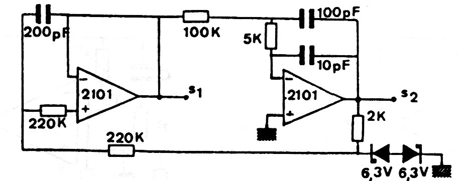 This circuit was found in an old publication. The operational amplifiers used are not common today, but modern equivalents can be used. The power supply must be symmetrical with voltage according to the operational and the signal generated is sinusoidal.