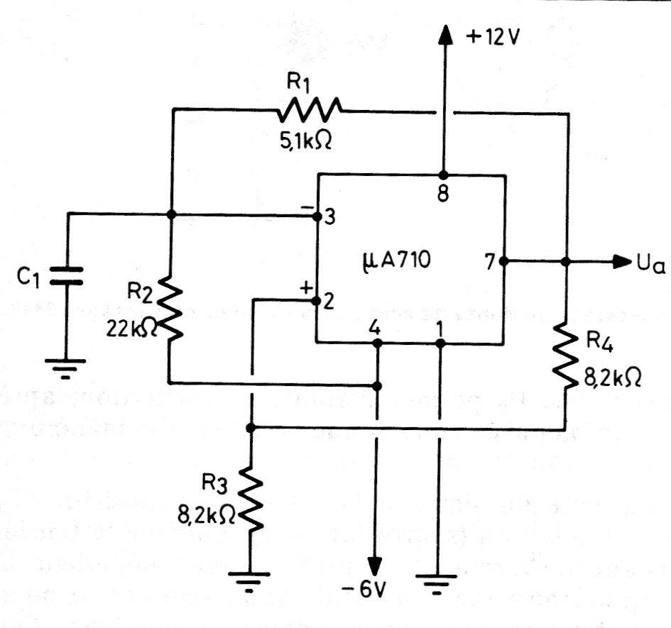 The integrated circuit used in this multivibrator is no longer common today. With the components indicated the frequency is a few kilohertz. The capacitor can have values between 100 and 220 nF in these conditions.