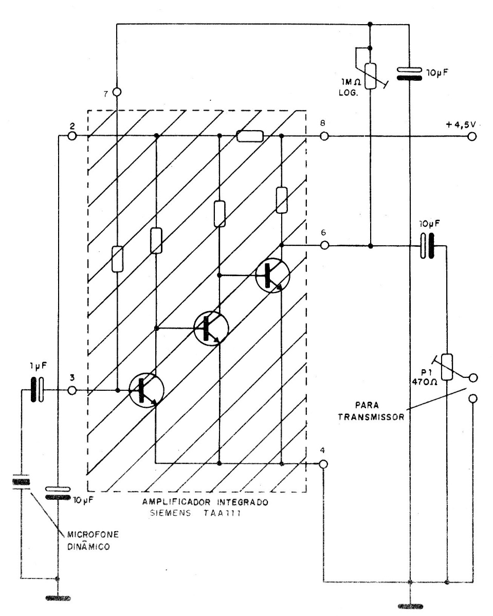 This circuit is suitable for modulating small FM transmitters for eavesdropping or espionage. The circuit is from the documentation of the 90s and the integrated circuit used is not the most common today.