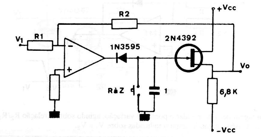 This circuit uses a common operational amplifier, and the resistors are calculated according to the value of the peak voltage that you want to detect. The field effect transistor can be of almost any type and the power supply must be symmetrical.