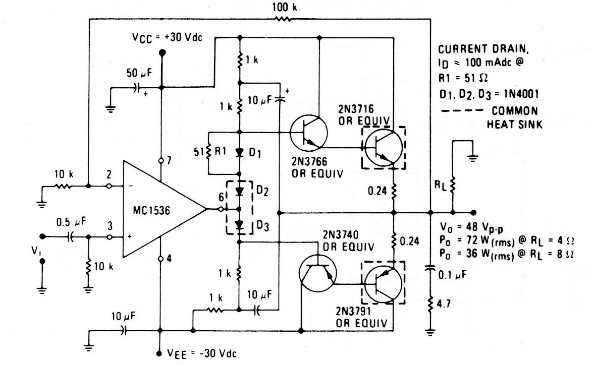 This circuit was found in an 80's Electronic Engineering. The circuit uses operatives of the time...