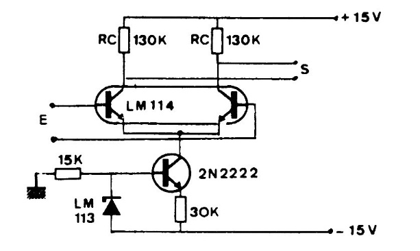 The pair of transistors matched in a single LM114 enclosure is not a common component today. The circuit is from an 80's documentation and must be powered by a symmetrical source.