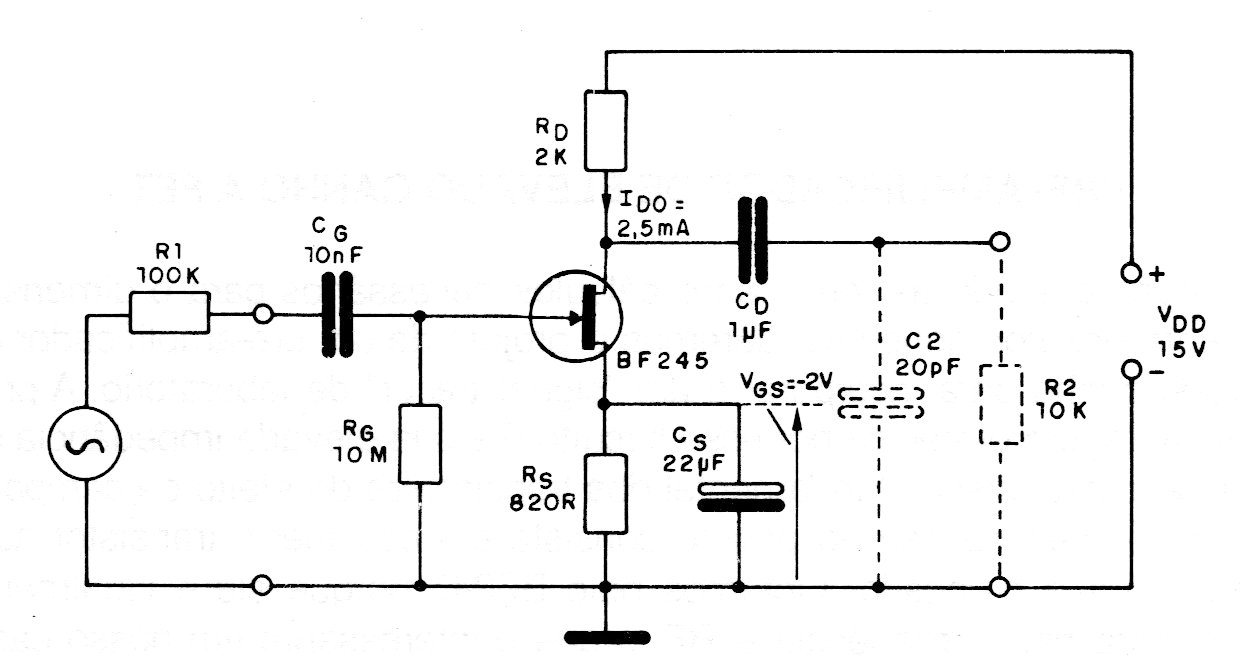 This circuit was obtained in an old European publication on FETs. The FET admits equivalent and the feed must have good filtration. Signal input cables and output cables must be shielded.
