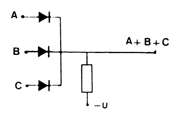In the figure we have the way to implement a 3-Input logic function OR inputs using common diodes. The circuit may have other port numbers.