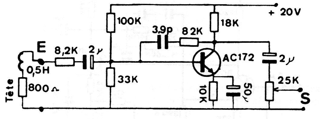 This circuit was found in documentation from the 90s, being indicated for use with tape recorders given its equalization. The transistor of the time can be replaced by a current equivalent, with minor changes that may be necessary in the polarization resistors.