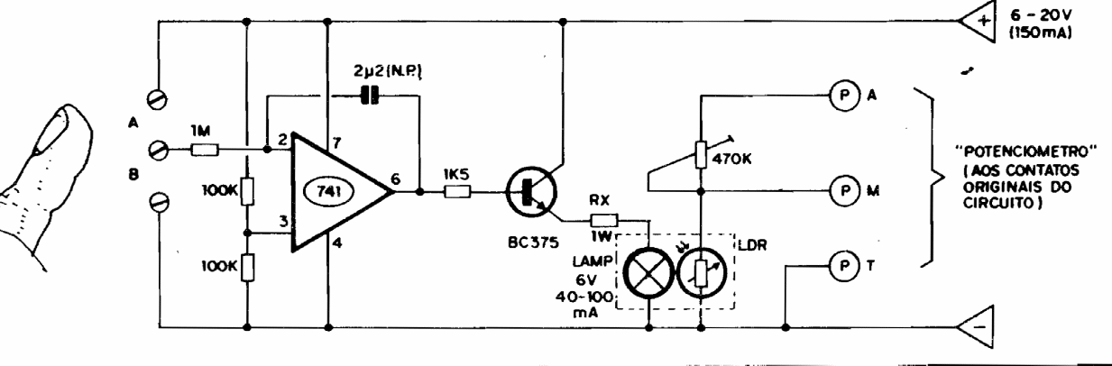 We found this circuit in an old practical publication. The circuit is still viable today and the 2u2 capacitor must be of excellent quality (polyester). The power can be adapted from the source of the amplifier where the control will work.