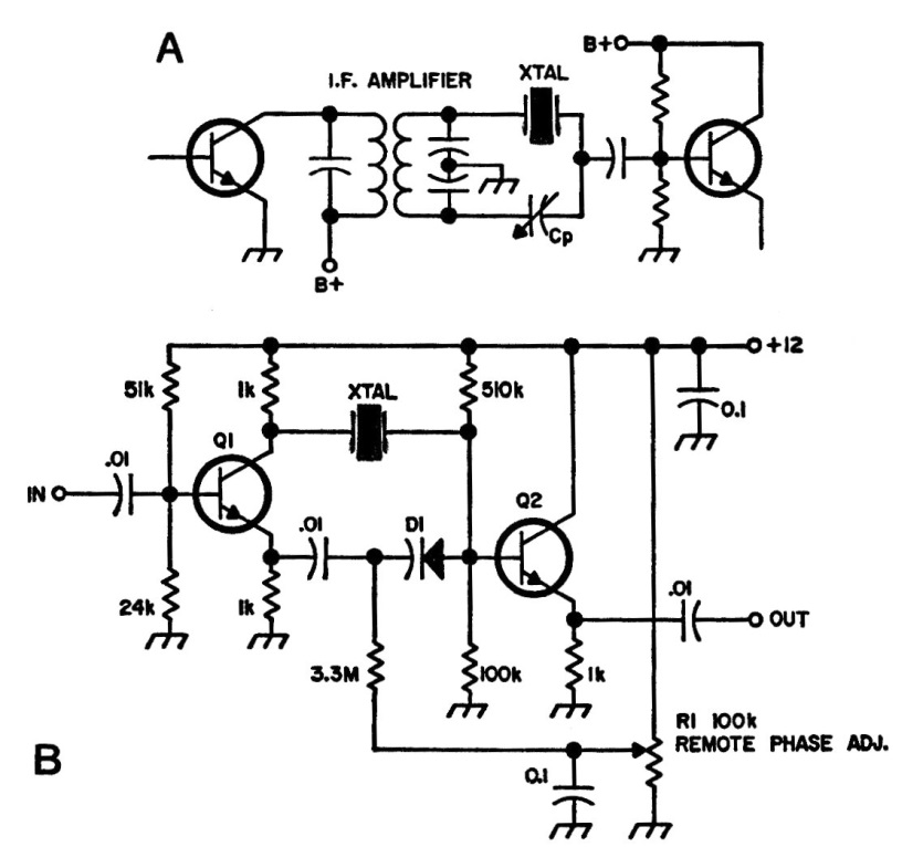 Below are two frequency filters for receivers using crystals. The crystals must have the frequency of the IF in the first case and in the second case the frequency of the signal that must pass. The circuit in the second case makes use of a varicap.