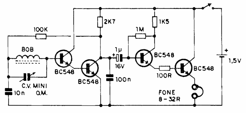 In this receiver the is formed by 80 turns of wire 28 or close in a ferrite rod. The handset is low impedance and powered by a standard battery.