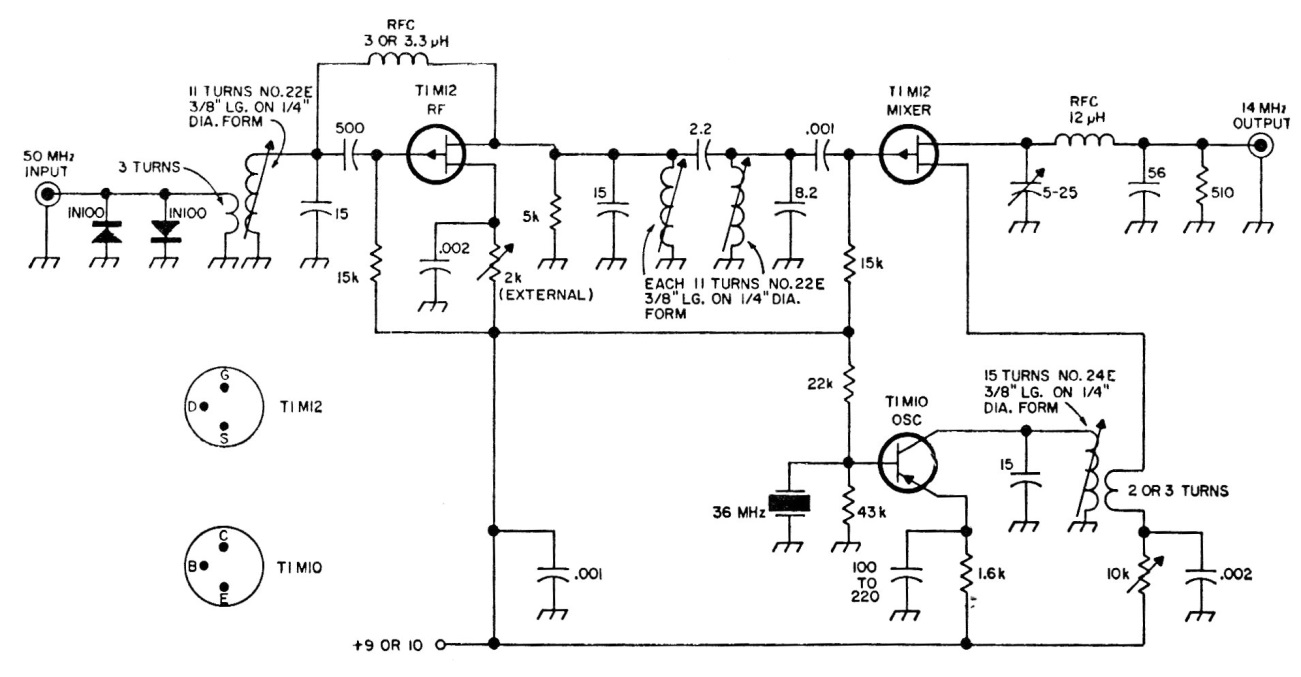 This circuit was found in a 1980s American schematic. Transistors can be modern equivalents. The circuit is critical for the frequency at which it operates, and the power can be supplied by battery due to the low consumption.