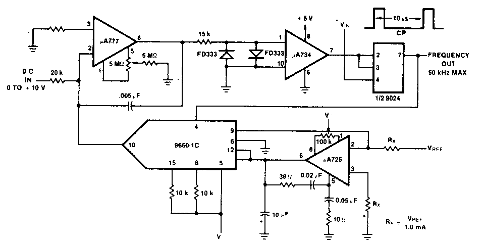 This circuit was found in documentation from the 90s. The components used are not common today. The circuit can be adapted to employ modern equivalent components.