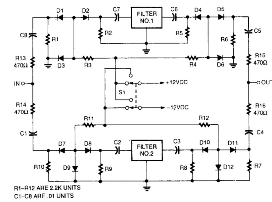 Found in Popular Electronics from the 1980s, this circuit is intended for switching filters with PIN diodes.