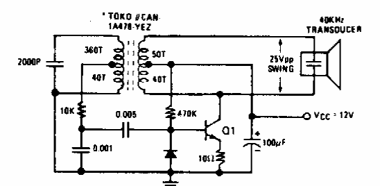This ultrasonic insect repellent was found in American documentation from the 1980s. The transducer is ultrasonic, and the power must come from the source.