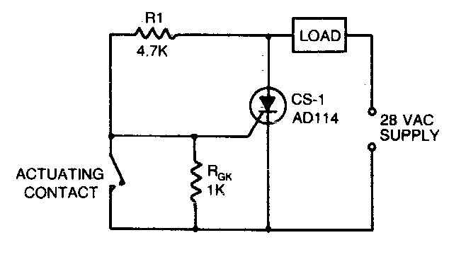 This SCR circuit is intended to control an AC load with a low current switch. This switch can be a reed sensor. The load depends on the SCR.