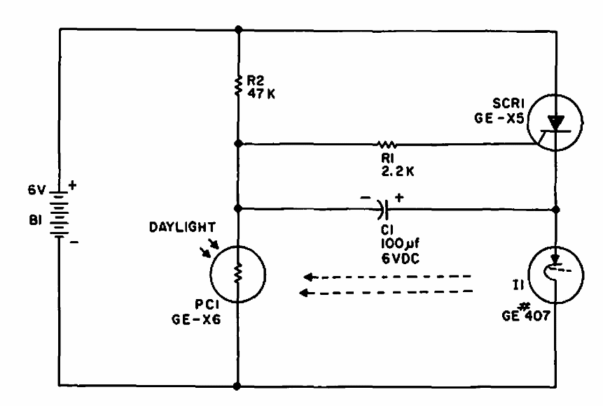 We found this circuit in a 1965 General Electric manual. The circuit applies to incandescent bulbs only and the operation occurs with the light cut off. The lamp blinks, as it is the type of the era that contains a bimetal inside.