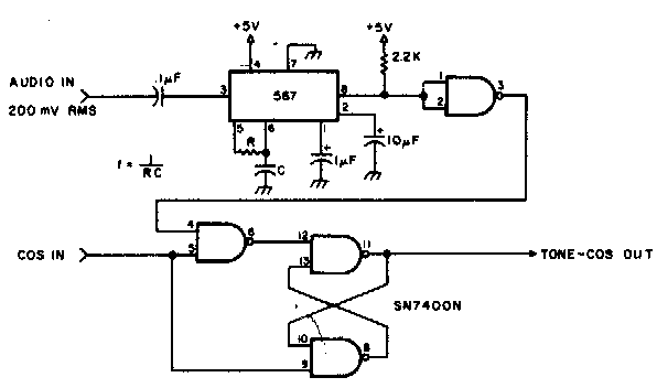 This circuit is from American documentation from the 1980s, based on the well-known 567. It is, therefore, a current circuit since the logic is TTL. The circuit can be used as a shield.
