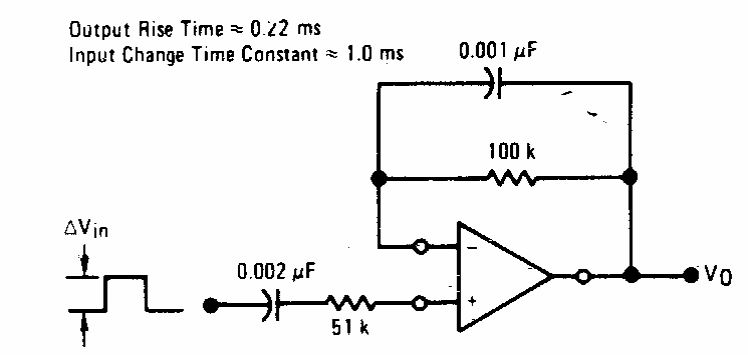 This differentiator for the positive front of the input signal can be elaborated based on any operational amplifier. The characteristics will depend on the components.