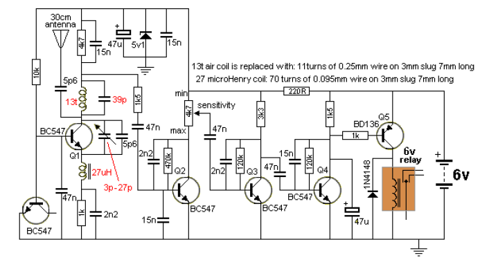 This receiver can operate with the transmitters shown in previous articles and even others described in our circuit bench. The circuit is from a recent English documentation and works with a sensitive 6V relay. The adjustment of the receiver is done in the trimmer.
