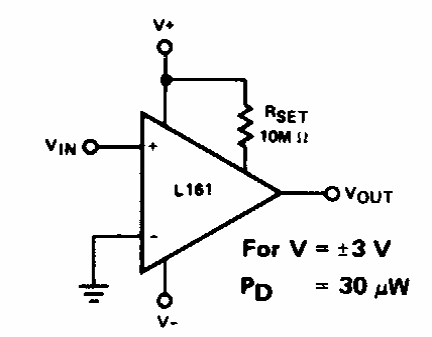 This 3 + 3 V symmetrical source circuit uses an old operational amplifier. The circuit is from an 80's documentation, consuming only 30 uW.
