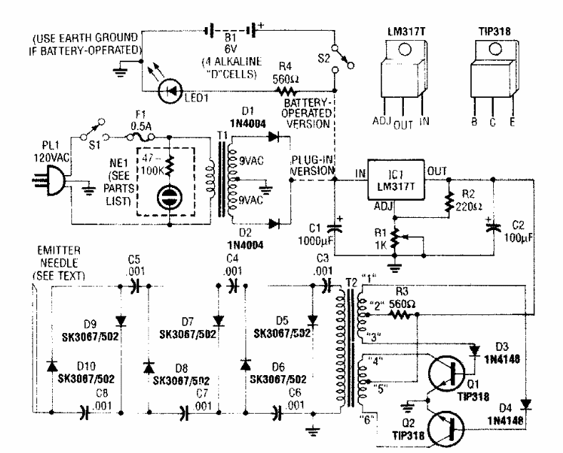 This circuit was found in Radio Electronics from the 90s. The components used are common, and the transistors and CIs must be equipped with heat sinks.