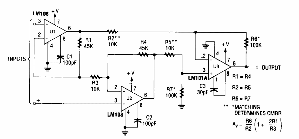 This circuit is from a Linear Technology manual from the 90's. The integrated circuit is from the time and the gain is determined by resistors R1, R2 and R6. The power supply is not symmetrical.