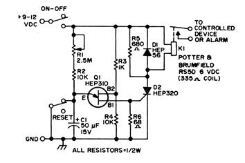 The timing of this timer found in American documentation depends on capacitor C1. This component can be increased to obtain longer timings. The circuit has a lock due to the use of the relay which can be of the sensitive type of 12 V.