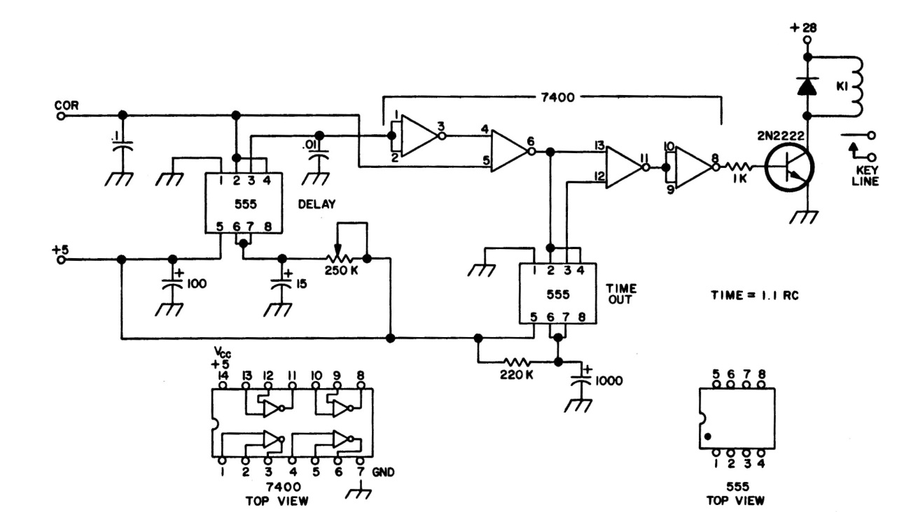 This circuit activates a relay with a delay that can be adjusted in a range of values that depends on the capacitor. The circuit can operate with lower voltages according to the relay. We found this configuration in a documentation from the 70s.