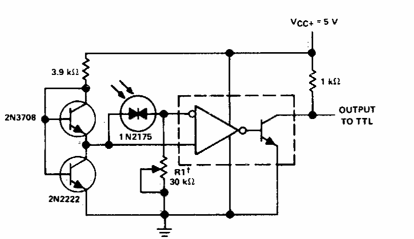 This high-precision circuit was found in documentation from the 1990s. The integrated circuit is an LM111 or another in the series. The circuit has TTL output and can function as a shield.