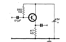 This is a typical common emitter stage circuit for general purpose transistor. Supply is 4.5V and collector current is 0.5mA. The circuit is from a 1960 Mullard manual.